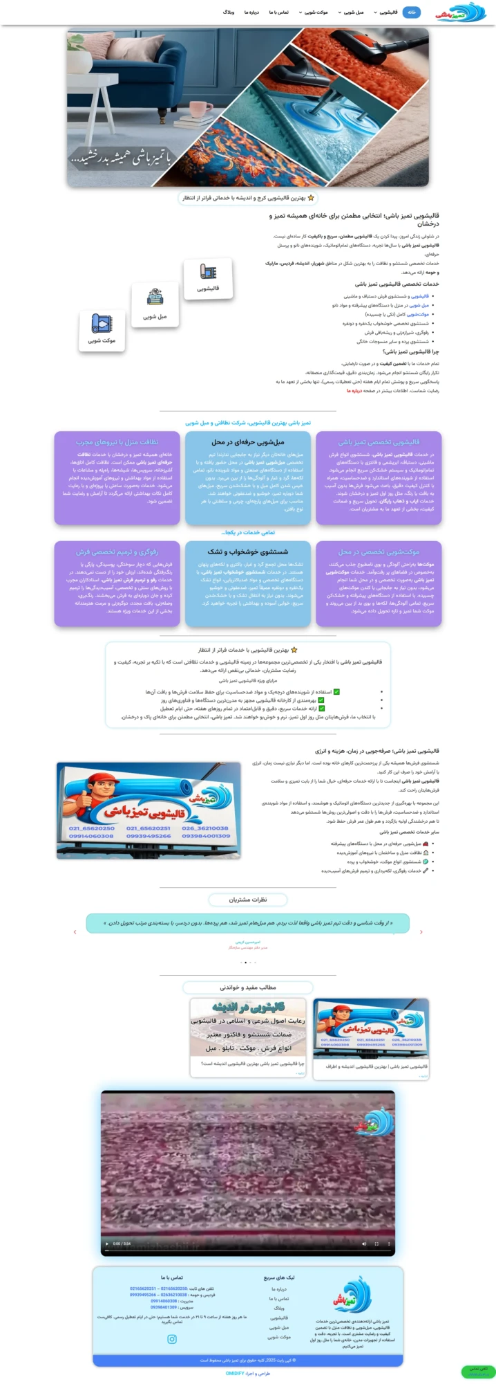 هدف اصلی از طراحی سایت تمیز باشی، معرفی شفاف خدمات قالیشویی،